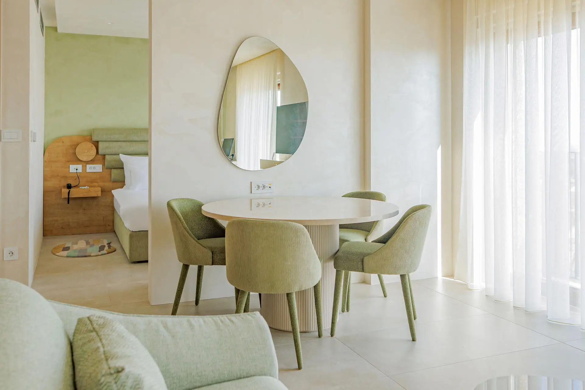 Posebna pažnja posvećena je izdvojenom prostoru za rad, koji je opremljen velikim radnim stolom, radnom foteljom, kao i monitorom i drugom opremom za povezivanje računara. Apartman uključuje i potpuno opremljenu kuhinju, prostranu spavaću sobu, prostor za ručavanje i odvojeni garderober. Sadrži udoban bračni krevet i sofu na razvlačenje, idealnu za jednu odraslu osobu ili dvoje dece. Gostima su na raspolaganju besplatni pristup internetu, elektronski sef, klima uređaj, flat-screen TV sa kablovskim kanalima, kupatilo sa tuš kabinom i balkon. Pametni sistem za digitalno upravljanje temperaturom, osvetljenjem i zavesama unapređuje iskustvo boravka, a dodatni luksuz pruža besplatan mini-bar i izbor Lavazza kafe i čajeva.